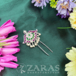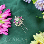 Zaras offers an extensive collection of head arches, featuring unique gold-plated designs and intricate pieces adorned with kemp stones. Popular designs include Manga designs, Gopurams, Pichi Mottu, and Kuchi. These head arches are also used in Kuchipudi performances.