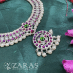 Zaras showcases an exclusive collection of attigais. Starting from Pearl attigais made with white pearls, green and maroon kemp stones and pendants of various shapes, to golden beaded attiagais which stand out from other collections and white and coloured stoned attiagi that shine out for heavy and intricate designs. The choker used for Mohiniyattam and Kuchipudi performances Alukkuthalis, is also available in various designs. The length can be adjusted with the help of attached extension threads.