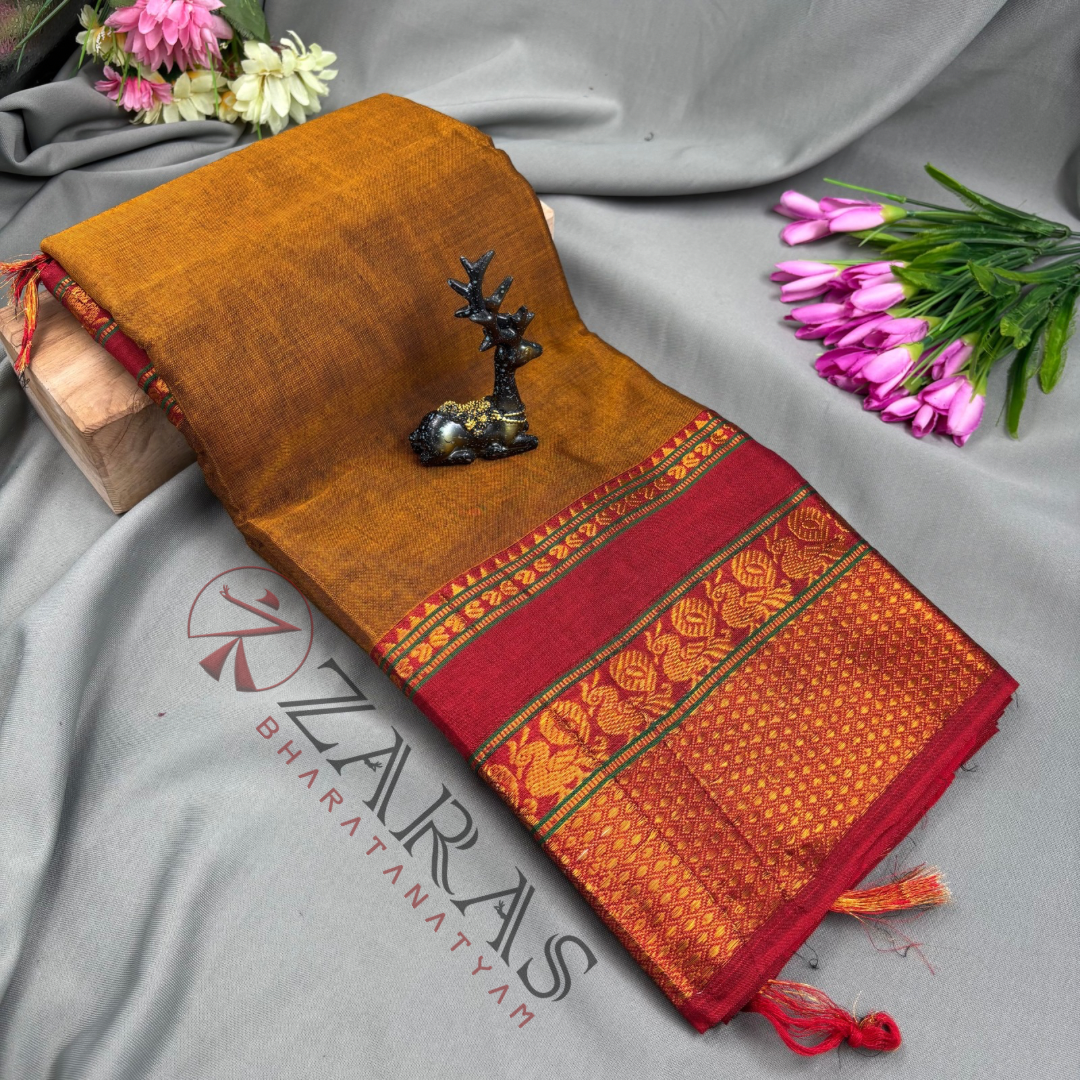 Explore Zara’s online collection, featuring an array of custom and ready-made Bharatanatyam cotton dance practice sarees.