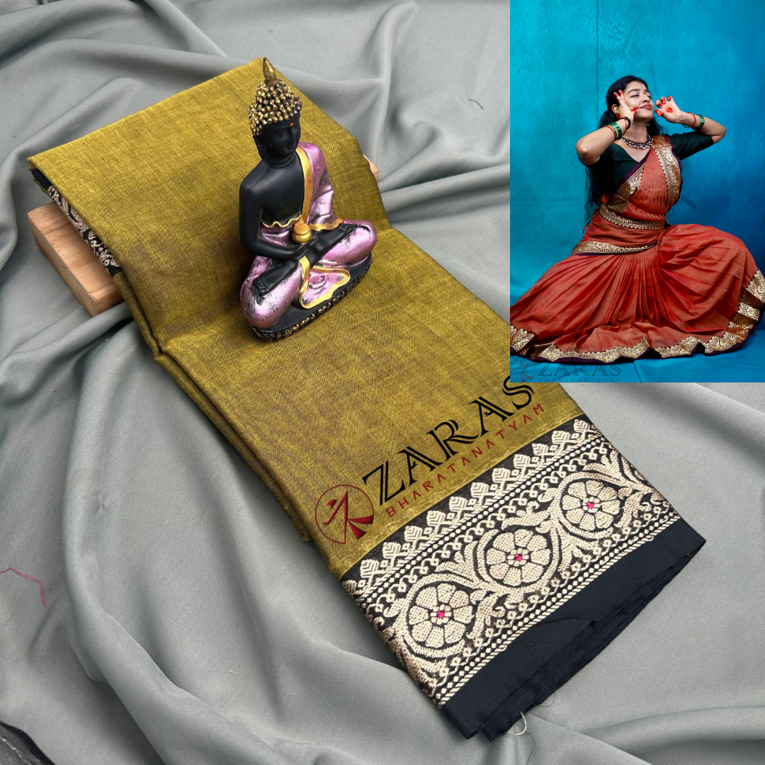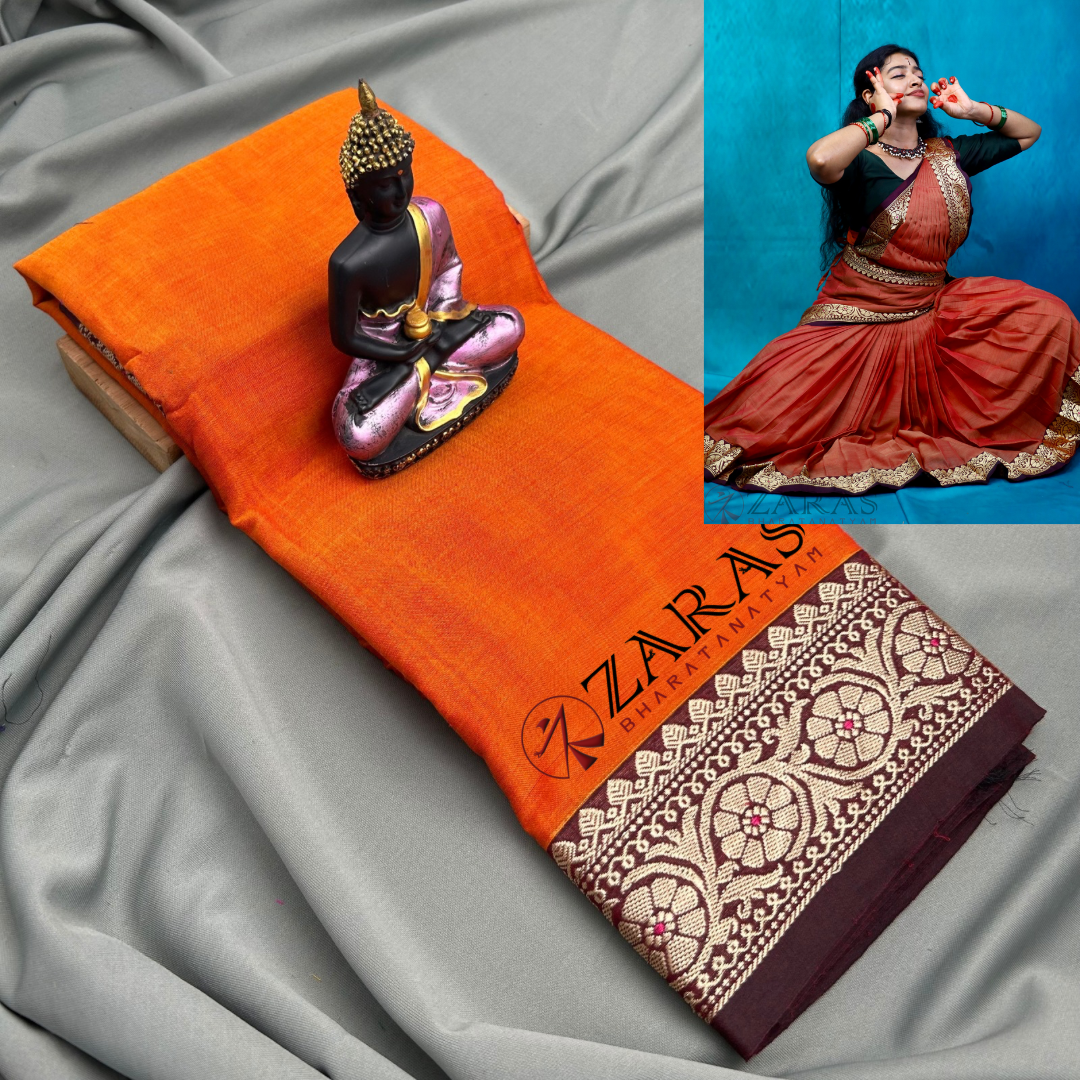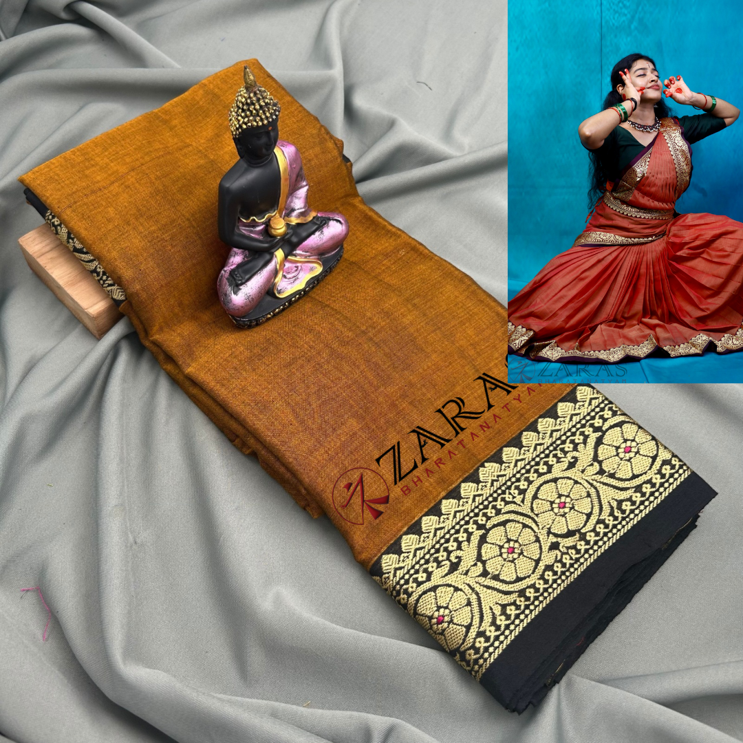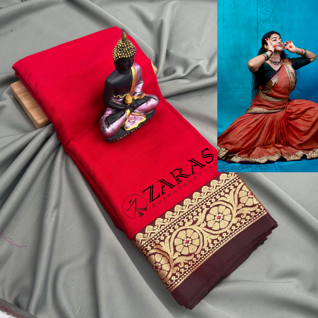 Dance practice sarees are an essential part of a dancer’s life, independent of the dance form, particularly Bharatanatyam, Kuchipudi, Mohiniyattam, and others. From practice space to final rehearsals, a dance saree travels along with a female dancer. The artist’s comfort from the breathable, sweat-absorbing cotton fabric allows the dancer to move with flexibility while also being the greatest partner for long hours of sweating and practice.