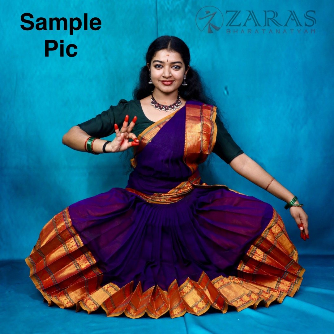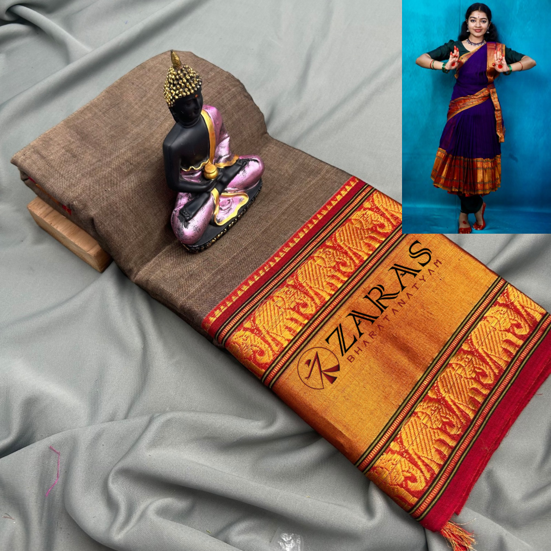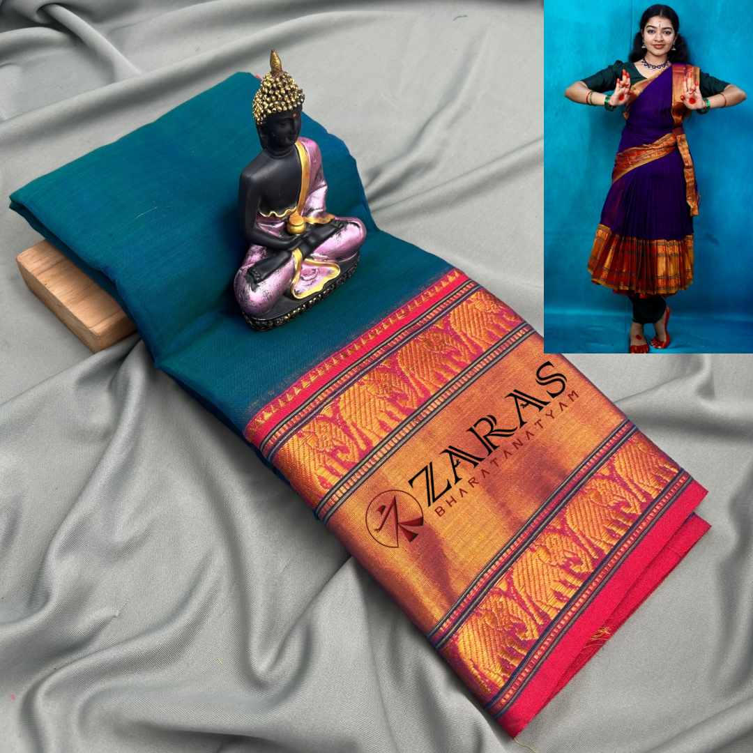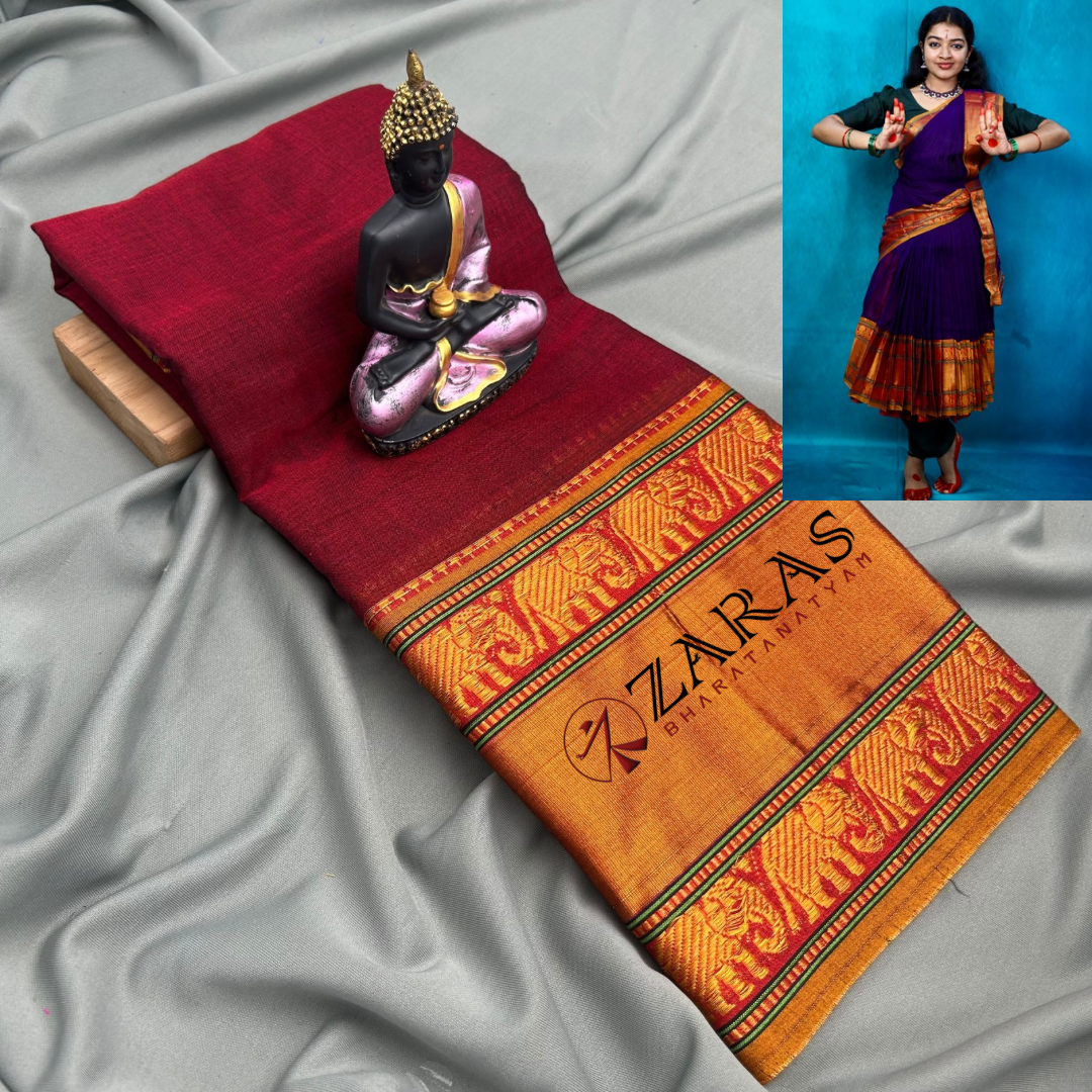 Explore Zara’s online collection, featuring an array of custom and ready-made Bharatanatyam cotton dance practice sarees.