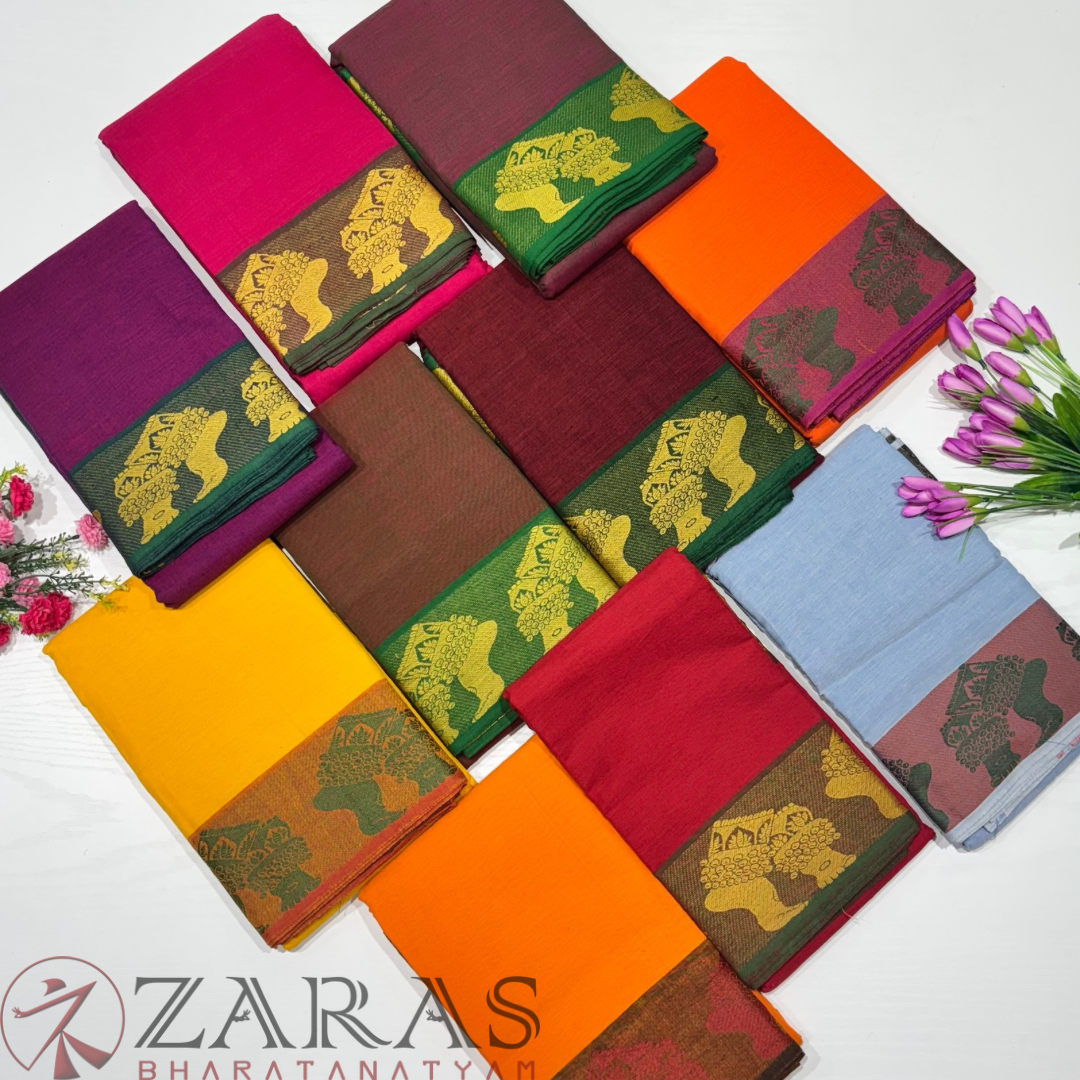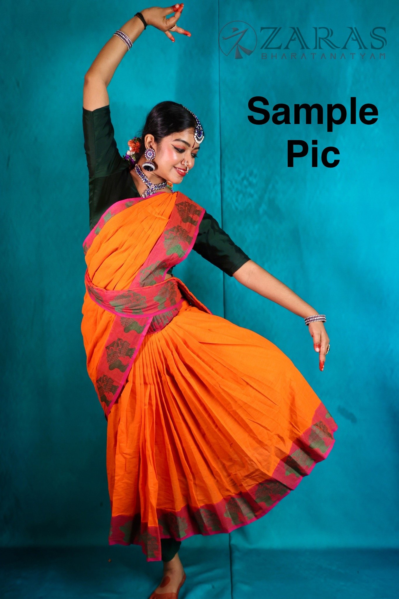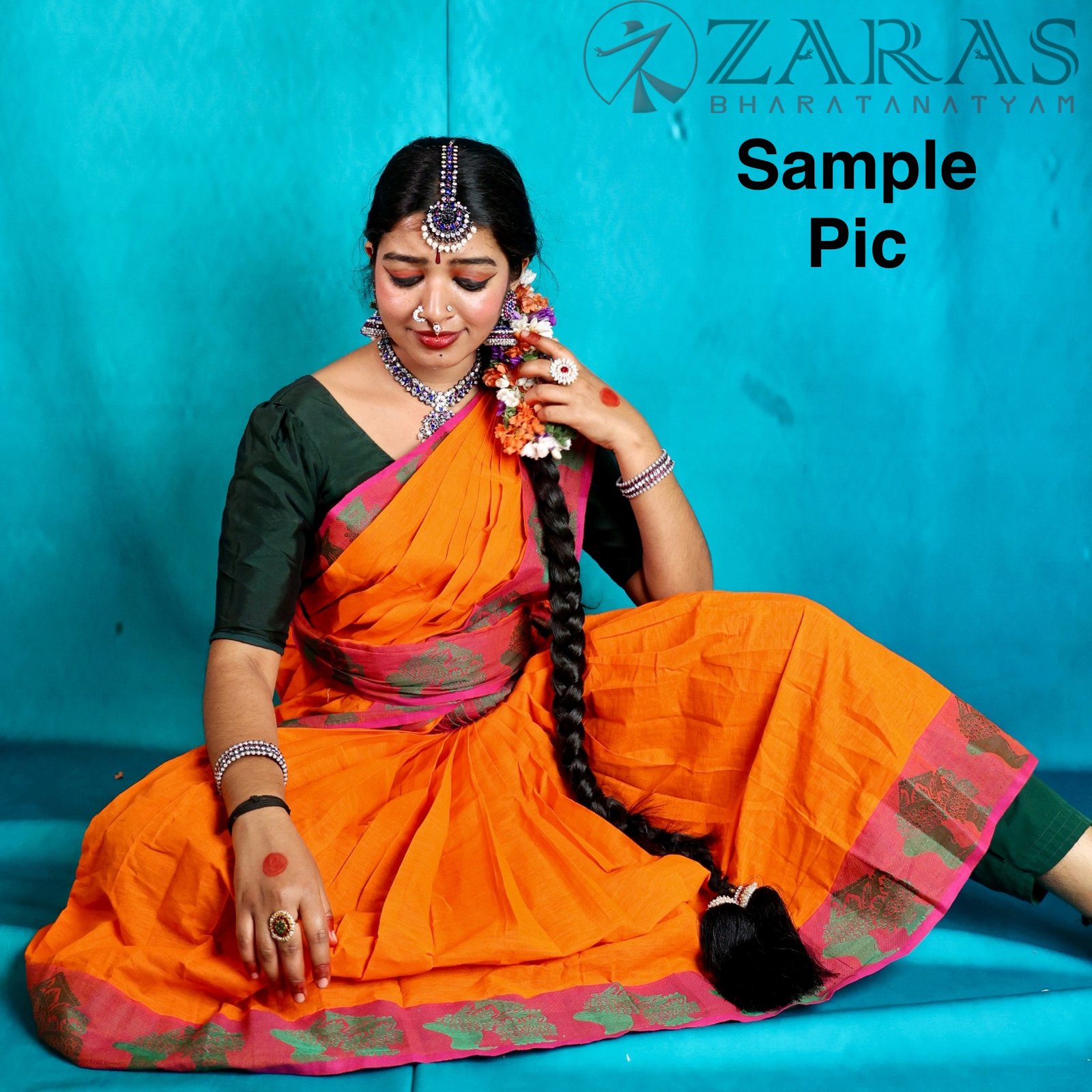 Explore Zara’s online collection, featuring an array of custom and ready-made Bharatanatyam cotton dance practice sarees.