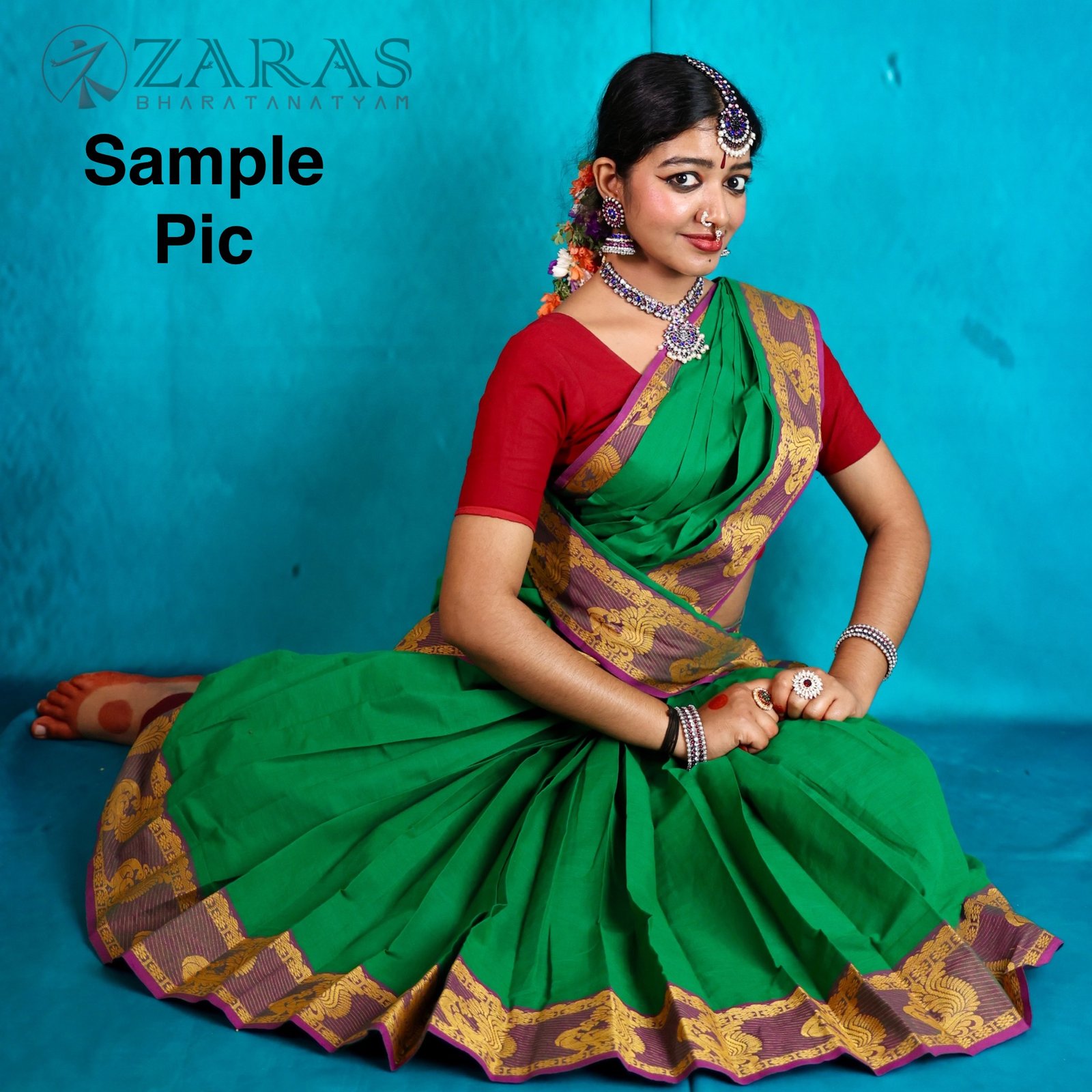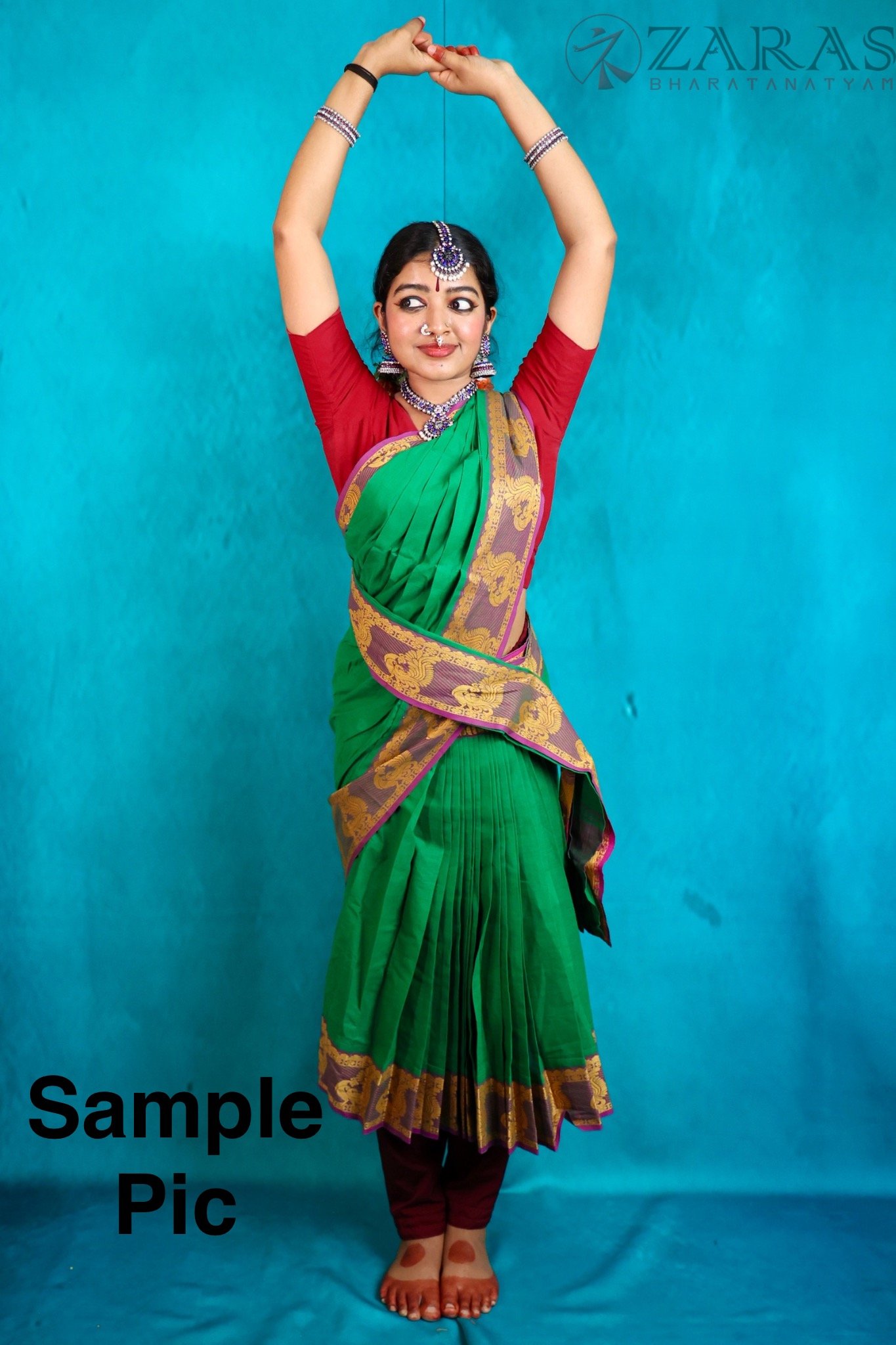 Explore Zara’s online collection, featuring an array of custom and ready-made Bharatanatyam cotton dance practice sarees.